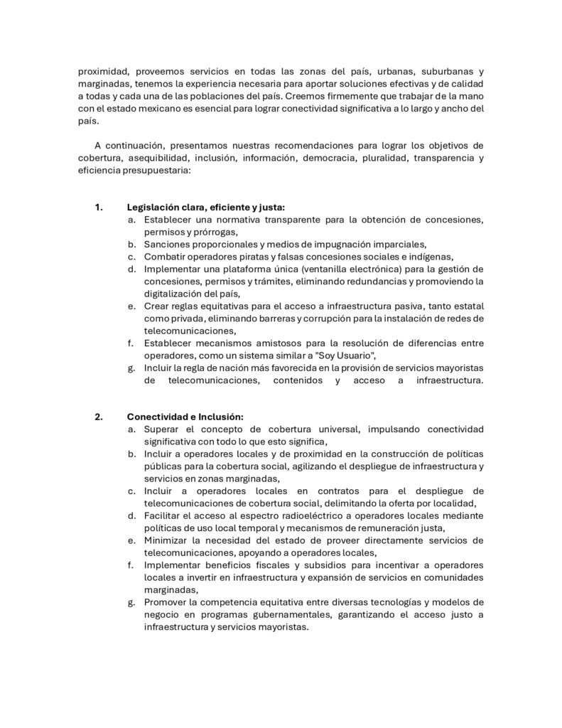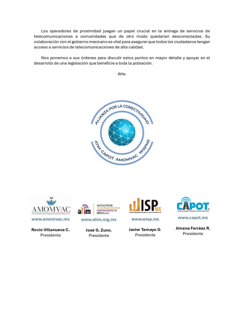 La conectividad no es solo un derecho; es una herramienta para el desarrollo, la inclusión y la transformación social. Por ello, reiteramos nuestra disposición para trabajar de la mano con el gobierno y construir juntos un México más conectado.